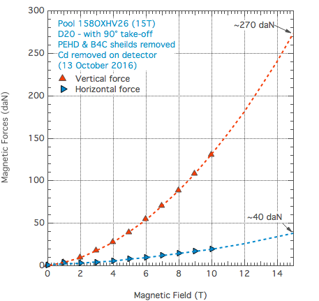 We present below the magnetic forces measured on D20 with the 15 T vertical field magnet 158OXHV26.