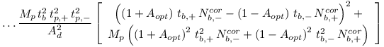 The AsymmetryOptDDTSDev function returns the asymmetry standard deviation from the counts Npp, Nbp, Npm, Nbm, the counting times Tpp, Tbp, Tpm, Tbm and the monitor values Mp and Mb in the case of cyclic measurements. This function corrects the counts for detector dead-time using a and b, the first and second order correction coefficients expressed in seconds, and aSDev, bSDev the corresponding standard deviations. The first indices [p] or [b] stand for peak or background measurements. The second indices stand for the [+] and [-] polarisation states. The asymmetry standard deviation is defined by: