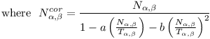 The AsymmetryOptDDT function returns the asymmetry from the counts Npp, Nbp, Npm, Nbm, the counting times Tpp, Tbp, Tpm, Tbm and the monitor values Mp and Mb in the case of cyclic measurements. This function corrects the counts for detector dead-time using a and b, the first and second order correction coefficients expressed in seconds. The first indices [p] or [b] stand for peak or background measurements. The second indices stand for the [+] and [-] polarisation states. The asymmetry is defined by: