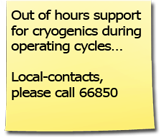 We know that not all unexpected major problems happen during normal office hours or can wait until the next day. The Services for Advanced Neutron Environment provides an Out of Hours team that is awaiting your call to help with emergencies in cryogenics.