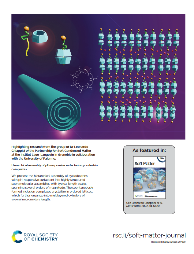 - 13. dos Santos Silva Araújo, L.; Watson, L.; Traore, D. A. K.; Lazzara, G.; Chiappisi, L. Hierarchical Assembly of pH-Responsive Surfactant–Cyclodextrin Complexes. Soft Matter 2022, 8 (35), 6529–6537. doi:10.1039/D2SM00807F.