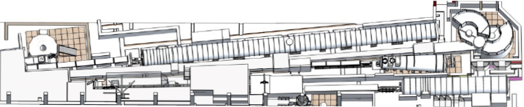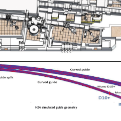 This approach exploits the differing radii of curvature of the H241 (R = 14,000 m) and H242 (R = 8,000 m) downstream sub-branches, allowing the guide to gradually expand over 22 metres with m = 2 divergence. As the guide curves, it naturally splits into two distinct branches before further subdividing into five end-of-guide positions. This configuration supplies neutrons to multiple instruments: XtremeD, CT2, and FIPPS access the lower, middle, and upper sections of H241, while D10+ and IN13 utilise the lower and upper sections of H242. The installation of the new guide, along with its associated civil engineering work, was carried out during the long H1-H2 shutdown in 2022.