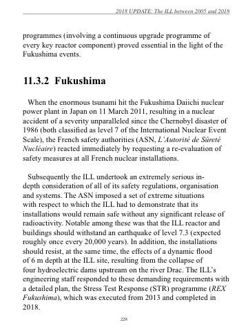 four hydroelectric dams upstream on the river Drac. The ILL’s engineering staff responded to these demanding requirements with a detailed plan, the Stress Test Response (STR) programme (REX Fukushima), which was executed from 2013 and completed in 2018.