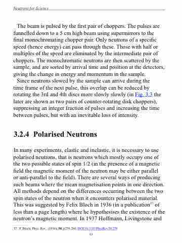 or anti-parallel to the field). There are several ways of producing such beams where the mean magnetisation points in one direction. All methods depend on the differences occurring between the two spin states of the neutron when it encounters polarised material. This was suggested by Felix Bloch in 1936 (in a publication57 of less than a page length) where he hypothesises the existence of the neutron’s magnetic moment. In 1937 Hoffmann, Livingstone and