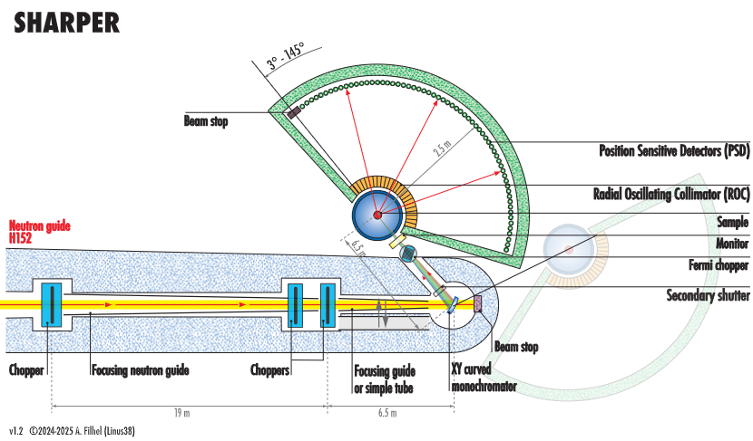 SHARPER is an inelastic spectrometer using the time-of-flight technique. The instrument is designed to access dynamic modes in condensed matter by measuring the energy exchange between a monochromatic neutron beam and the sample.