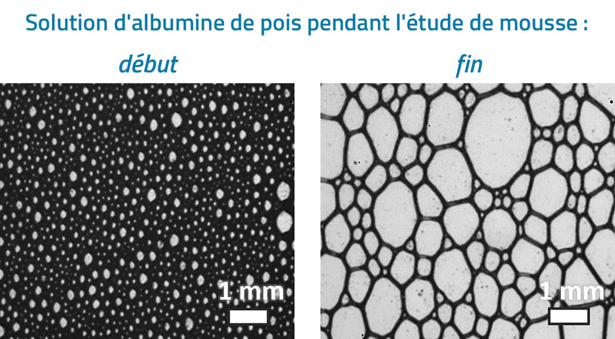 Schéma de l'étude in situ et résolue dans le temps des mousses préparées avec des albumines de pois