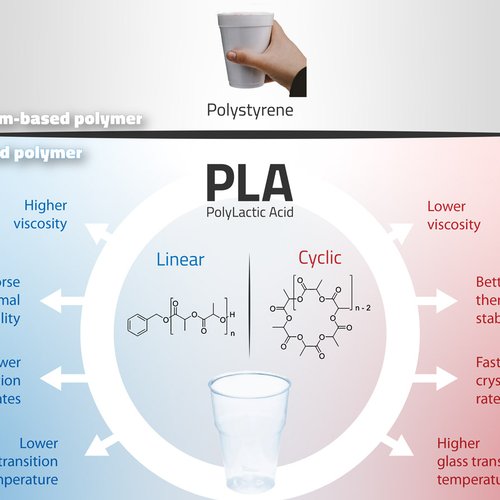 Recent progress in polymer synthesis has enabled the production of pure, well-defined cyclic polymers in large quantities. The cyclic topology – where the usual linear chain of monomer units forms instead a circular structure with the chain ends joined – is responsible for a range of unique physical and chemical properties: lower viscosities, higher transition temperatures, better thermal stability and faster crystallization rates compared to conventional linear polymers. The cyclic form of PLA is thus attracting significant interest through its potential to improve the range of properties and thus expand the versatility of PLA.