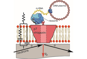 The cell-free preparation of supported bilayers containing p7 and NR and EIS measurements (not to scale). For neutron reflectivity, membranes were formed on quartz and an incident neutron beam was transmitted through the substrate and reflected from Credit: Thomas Soranzo (Synthelis SAS, University Grenoble Alpes), Donald K. Martin (University Grenoble Alpes), Jean-Luc Lenormand (University Grenoble Alpes), and Erik B. Watkins (Los Alamos National Laboratory)