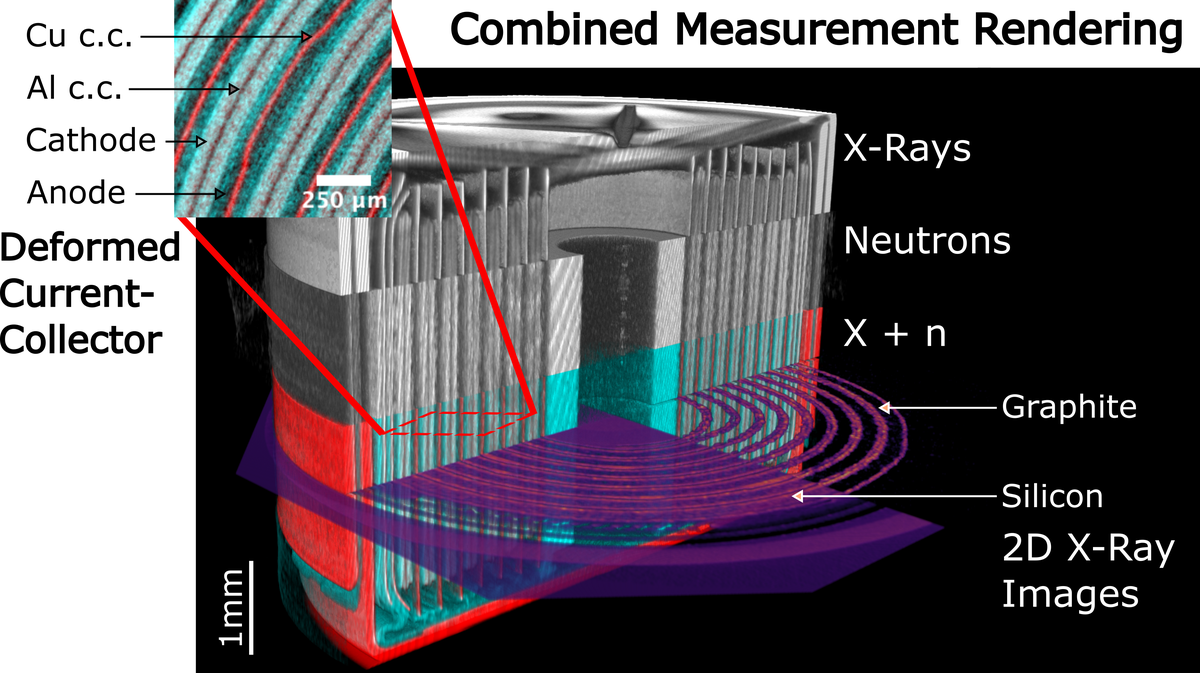 Sur l'instument NeXT, la tomographie neutronique 3D haute résolution est couplée à la tomographie à rayons X pour obtenir une image de l'ensemble de la cellule. Erik Lübke explique que "les rayons X donnent la structure de base, ce qui permet de savoir exactement où nous nous situons lorsque nous utilisons les neutrons pour examiner en détail la distribution spatiale du lithium " en bénéficiant de "la meilleure résolution neutronique que l'on puisse obtenir dans le monde ".