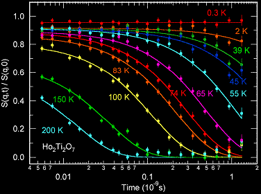 S(Q,t) measured for a polycrystalline sample of Ho2Ti2O7 (G. Ehlers et al., J. Phys. Cond. Matter 16, (2004) S635)