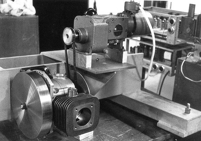 The next generation of velocity drives for BS spectroscopy was introduced again at the FRMI using a modified Fichtel & Sachs petrol motor used normally for concrete mixing machines. The photo below shows the first prototype. This crank shaft drive achieved speeds up to 1.5 m/s.