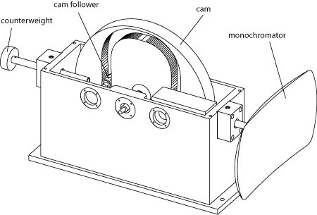 The Doppler drive is designed to achieve a top frequency of 25 Hz which corresponds to an acceleration in excess of 100 g's. The support structure is constructed from a graphite composite with a foam core to minimize the total mass of the assembly. In addition, the maximum deflection of the structure at the highest operating speed is designed to be less than 0.25 mm to keep the energy resolution as narrow as possible.
